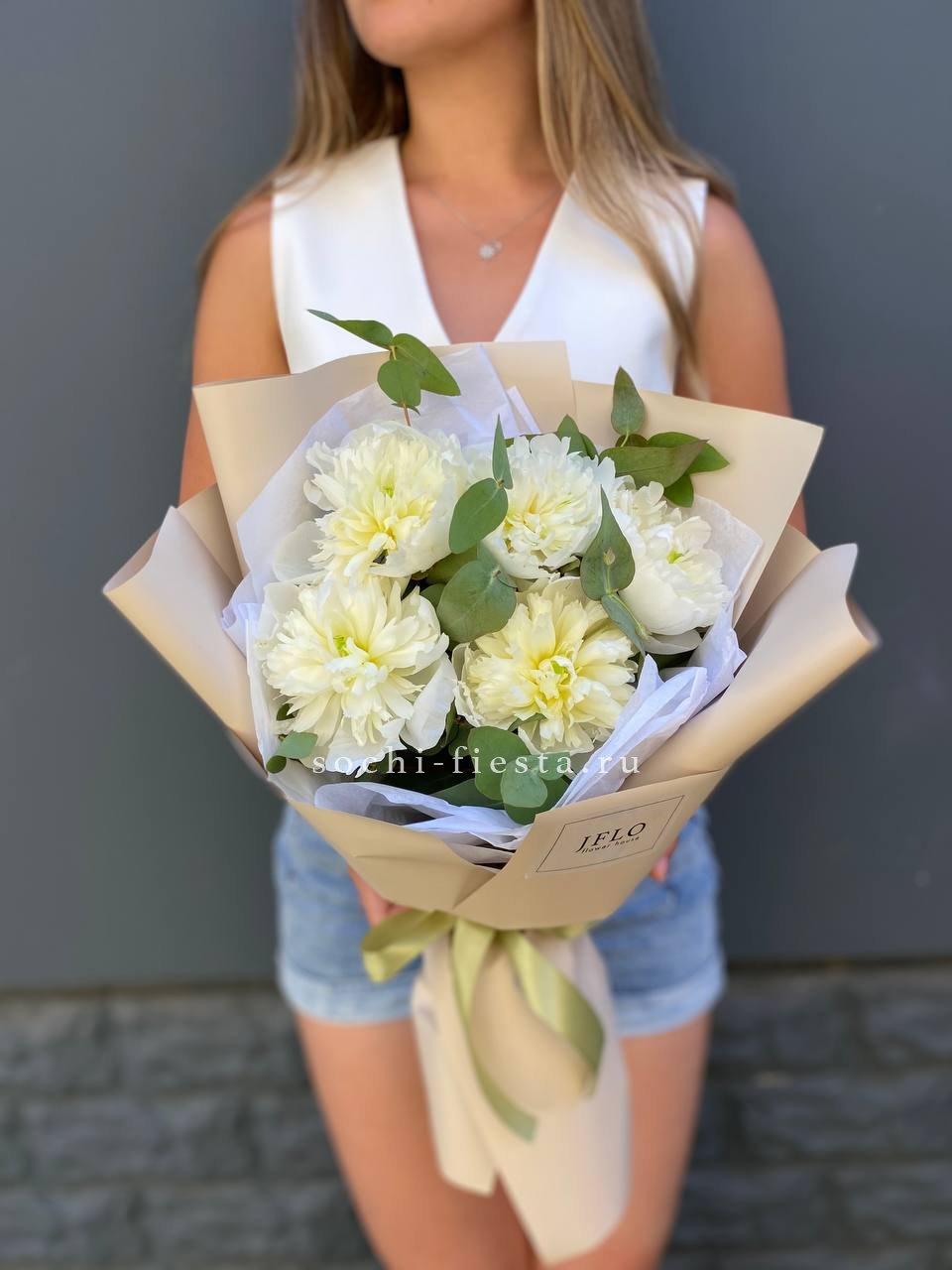 Букет белых пионов