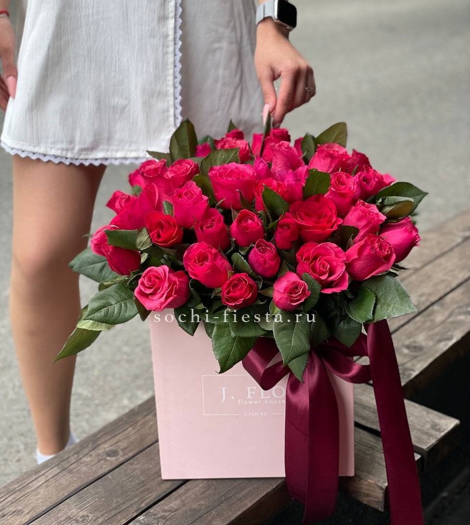 розы - 55 шт., лента, авторская упаковка.