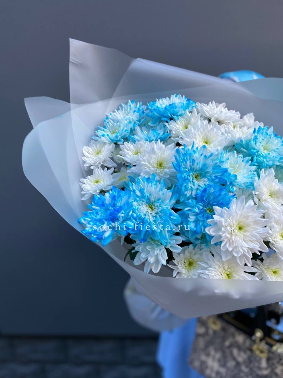 Букет хризантем "Голубая снежинка"