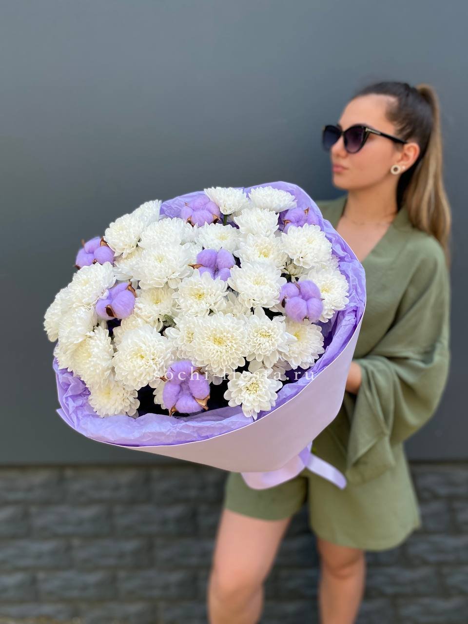 Для заказа товара " Букет хризантем и хлопка" с доставкой в Саранске нажмите в корзину