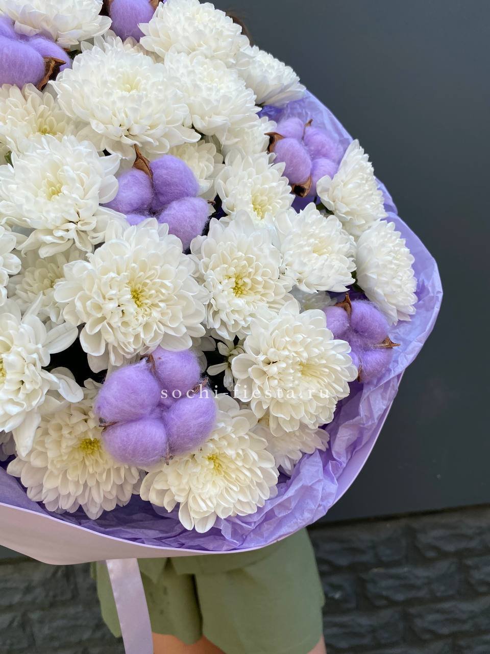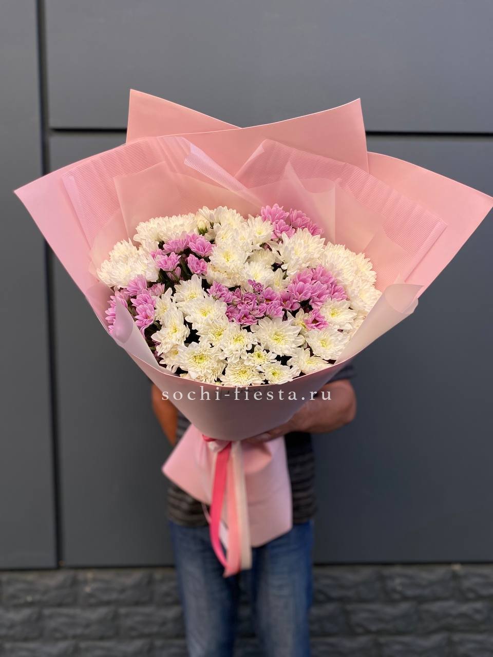 хризантема кустовая - 19 веток, лента, дизайнерская пленка.