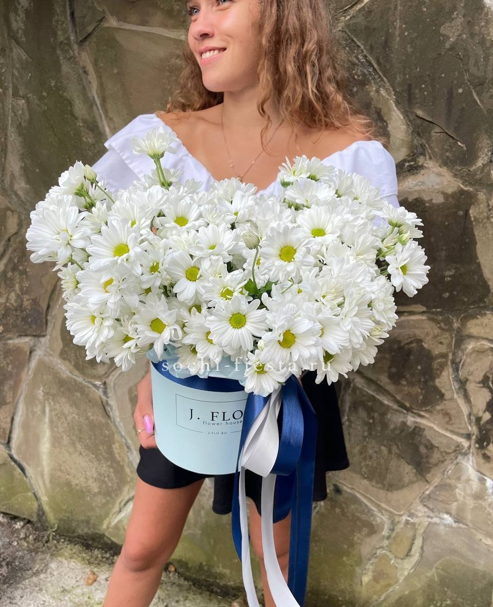 Белоснежные кустовые хризантемы раскрываются мягкими шарами соцветий. Чистота линий и спокойный ритм бутонов создают ощущение воздуха и света.