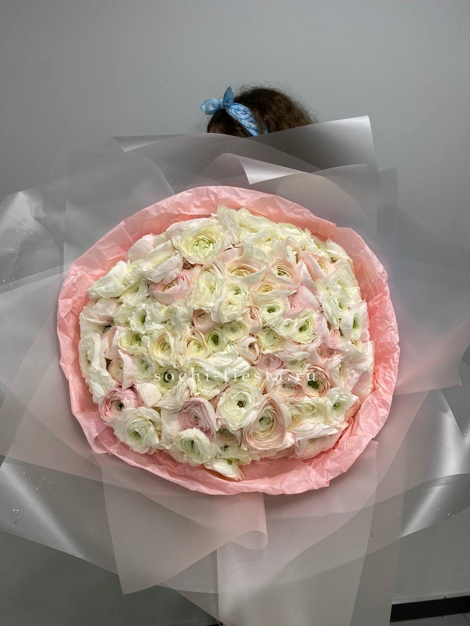 микс охапки ранункулюсов в нежном оформлении Количество можно согласовать у менеджера) Ранункулюсы- нежные цветы и большое количество собирается в плотную сборку)Такой объём лучше заказывать за 1.5 недели)