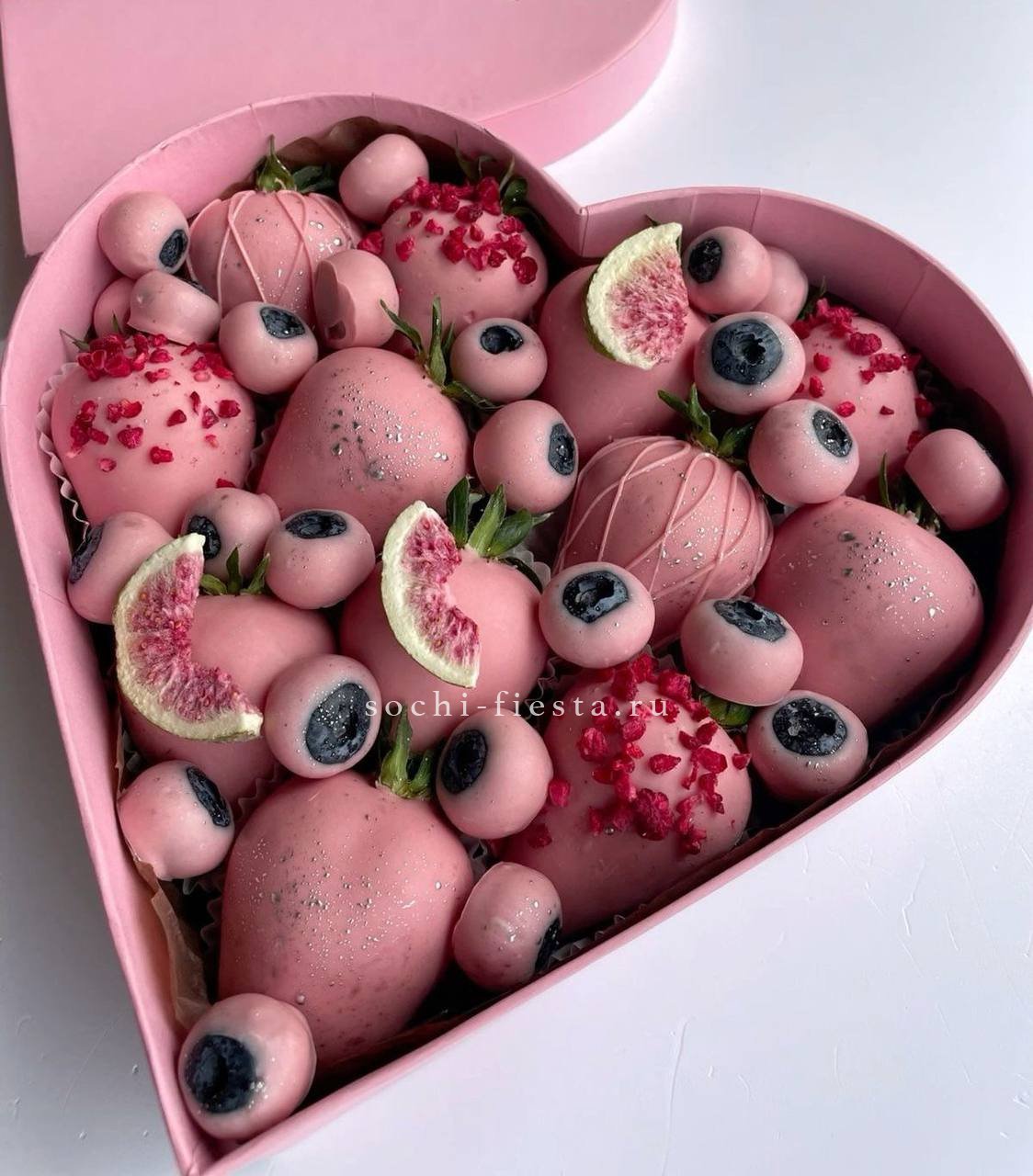 клубника в бельгийском шоколаде в коробке сердце. Данный товар можно заказать только с букетом, цветочной композицией, шарами или подарочной корзиной.