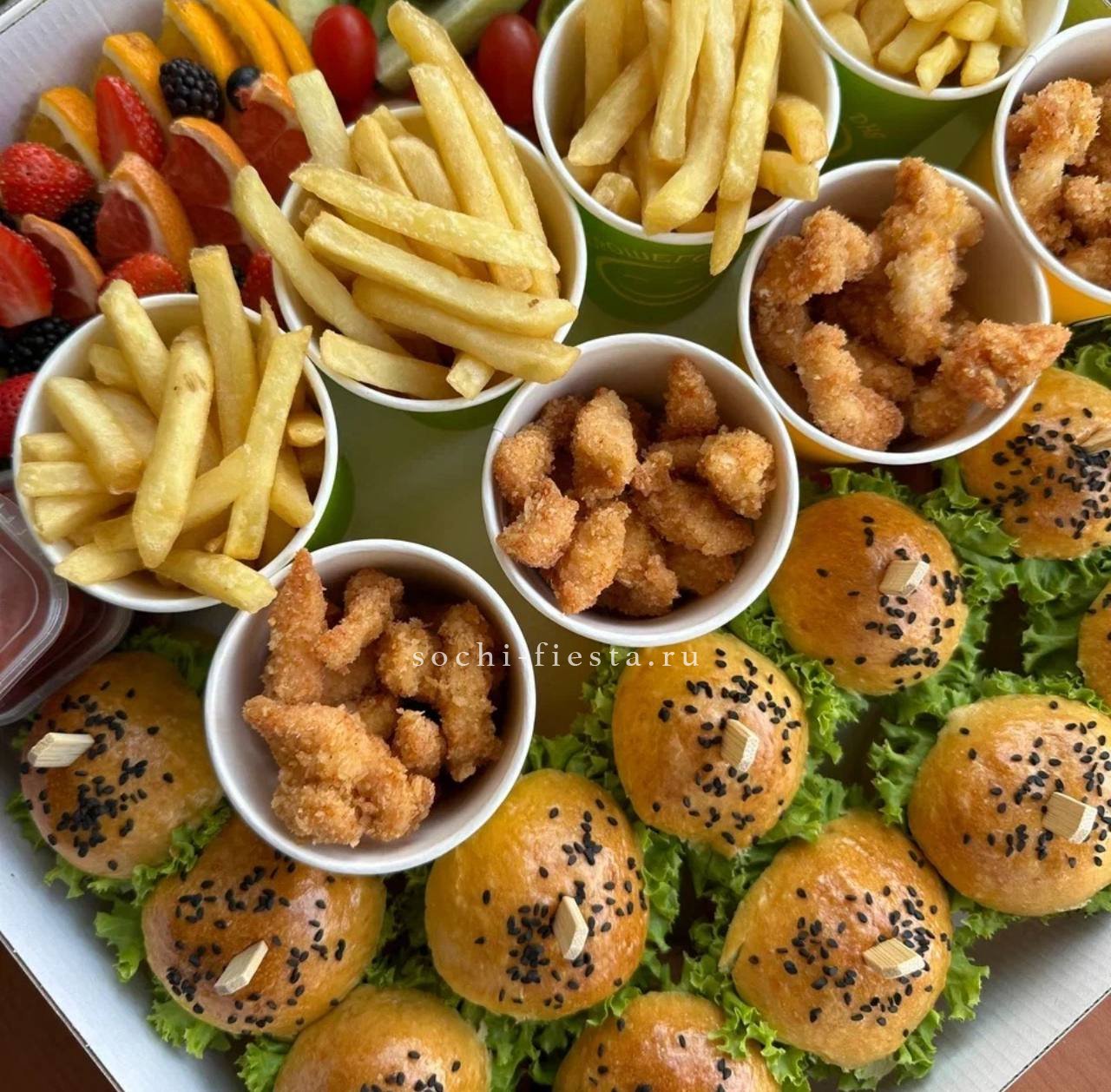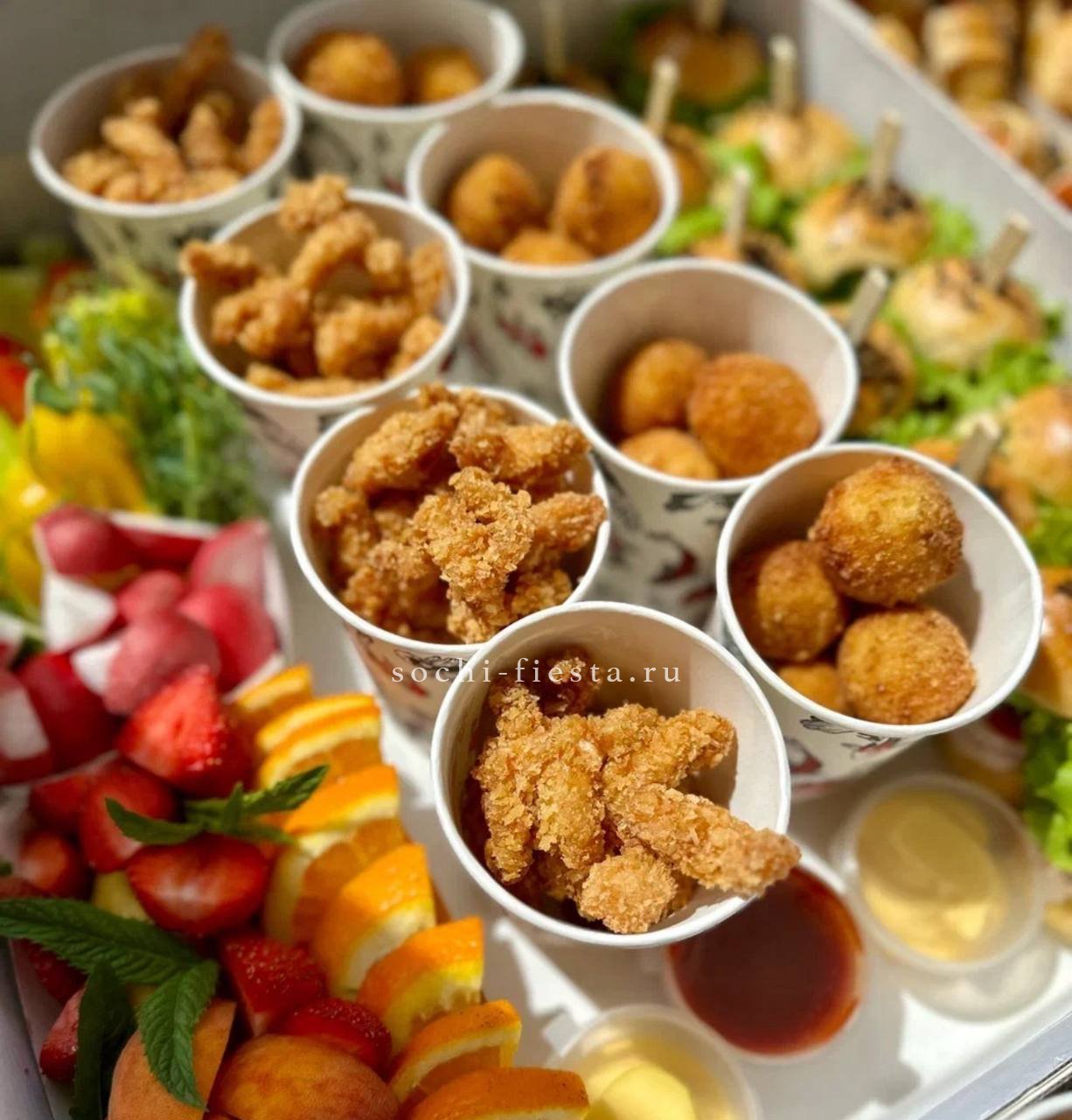 брускетта с голубым сыром и карамелизированной грушей- 3 шт.,  брускетта Цезарь- 3 шт., брускетта сырная с манго-маракуйя- 3 шт.