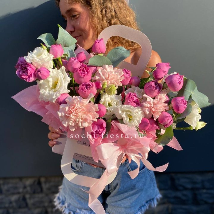Размер выбирается по повод. Коллеге в Саранске — M или L. Юбилей родителей — XL. Выписка из роддома — L в пудровой палитре. Корпоративный юбилей — XXL. Романтический подарок — M или L в яркой палитре.