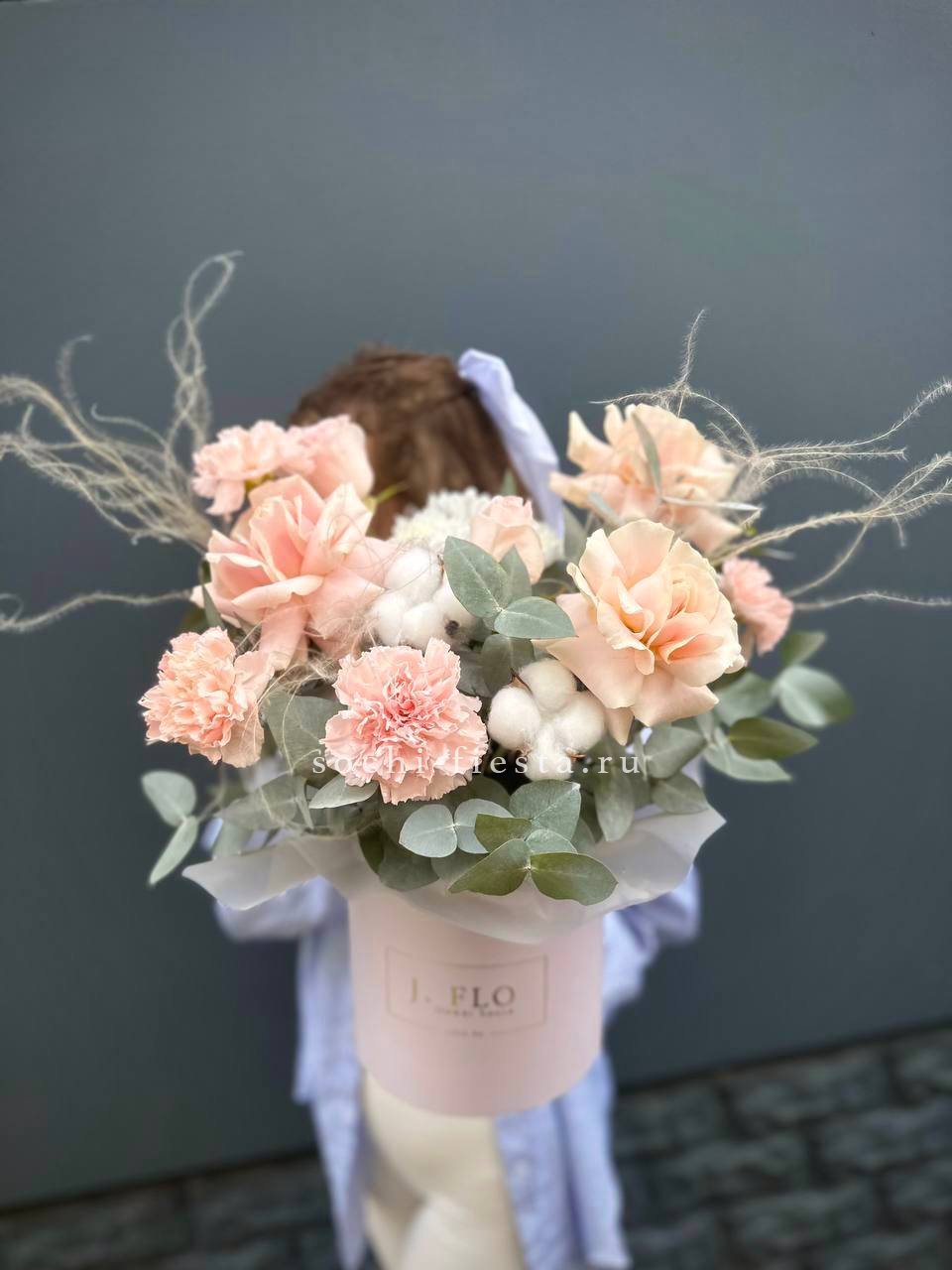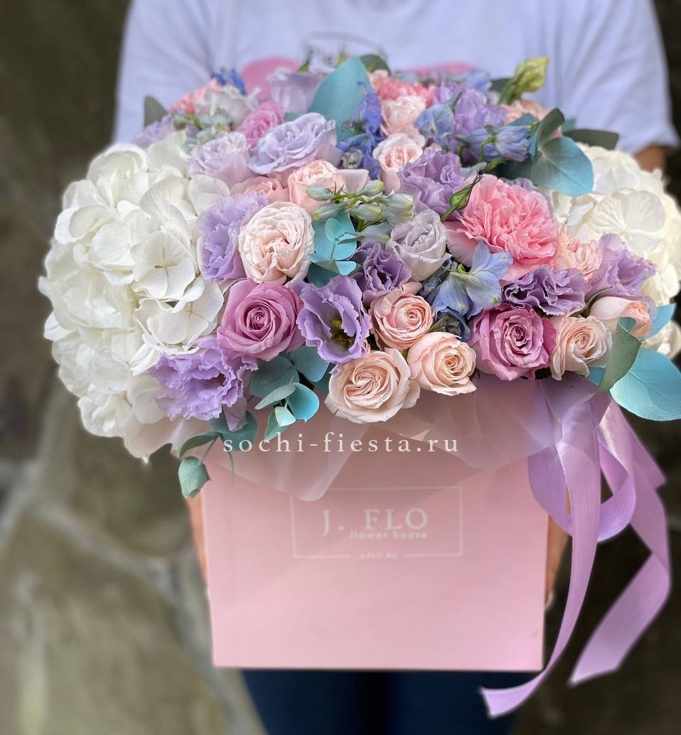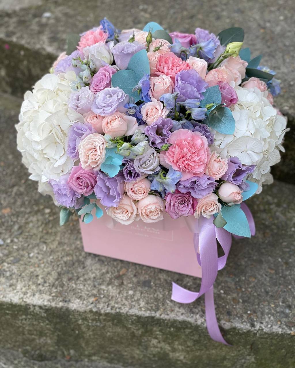 гортензия, пионовидные розы, эустома, эвкалипт, бокс 16.