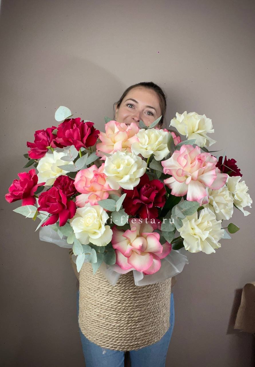 Для заказа товара "35 французских роз микс в джутовом боксе" с доставкой в Саранске нажмите в корзину
