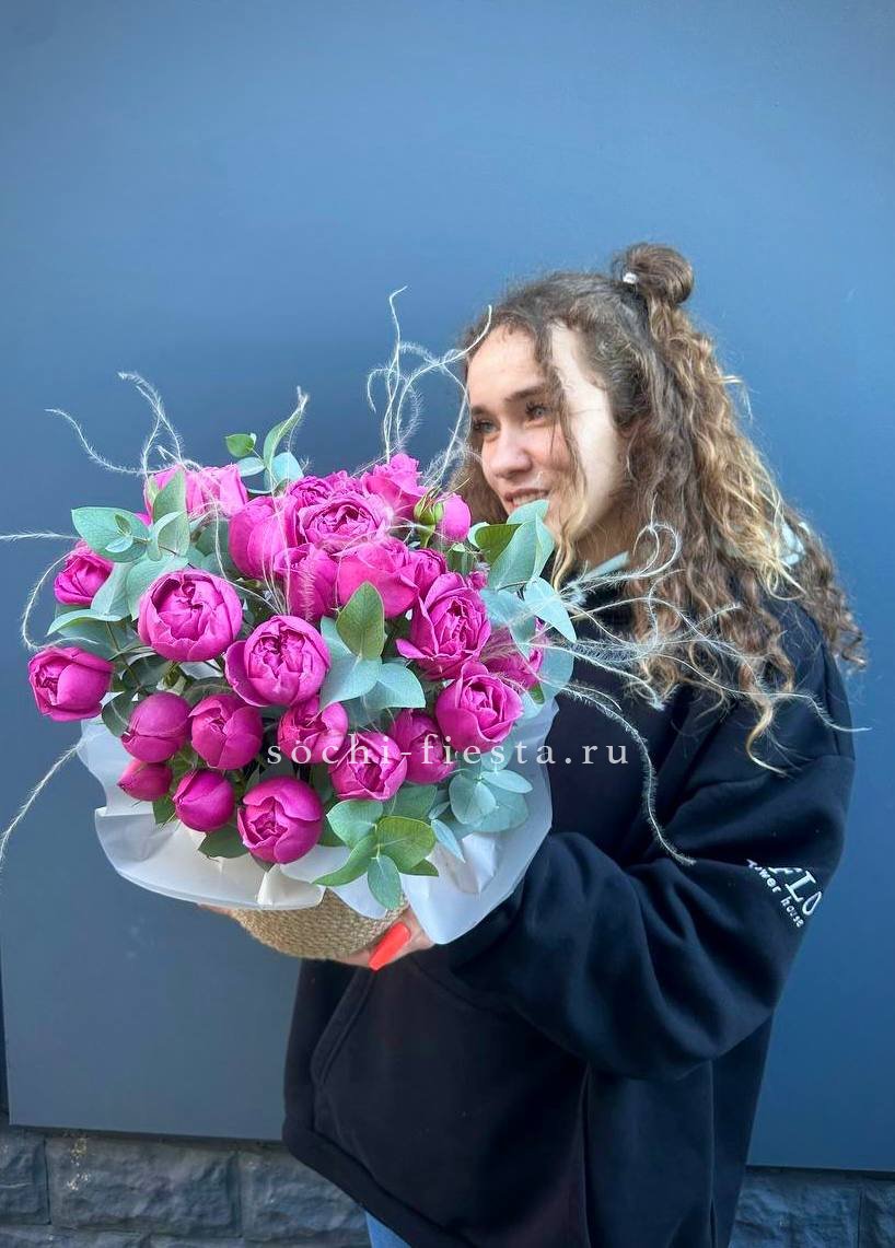 Для заказа товара "Пионовидные розы в джутовом кашпо " с доставкой в Саранске нажмите в корзину