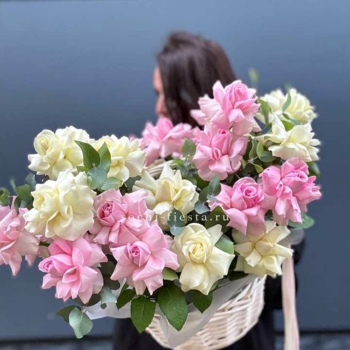 Именинная корзина в Саранске — самый популярный частный формат. Флорист создаёт куполообразную аранжировку в плетёной корзине диаметром 35-55 см. Розы или пионы в основе, зелень и декоративные акценты — нарядный объект, который сразу создаёт торжественную атмосферу. Именно такую корзину несут на юбилей или важный день рождения, когда хотят, чтобы подарок был виден и запомнился.