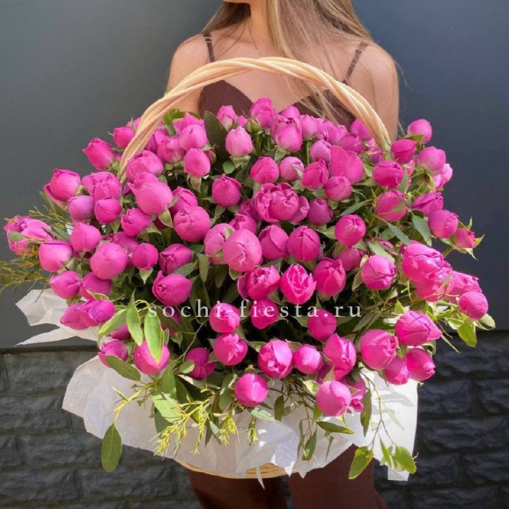 Каждый сезон приносит в Саранске свой ассортимент корзин. Весной флорист создаёт корзины с тюльпанами и нарциссами — лёгкие, нежные, полные ощущения обновления. В мае-июне приходят пионы — Sarah Bernhardt, Bowl of Cream, Red Charm — главный флористический праздник. Осенью — хризантема в тёплых гаммах с декоративными ягодами и ветвями. Зимой — хвойные аранжировки с амариллисом для праздничной атмосферы.