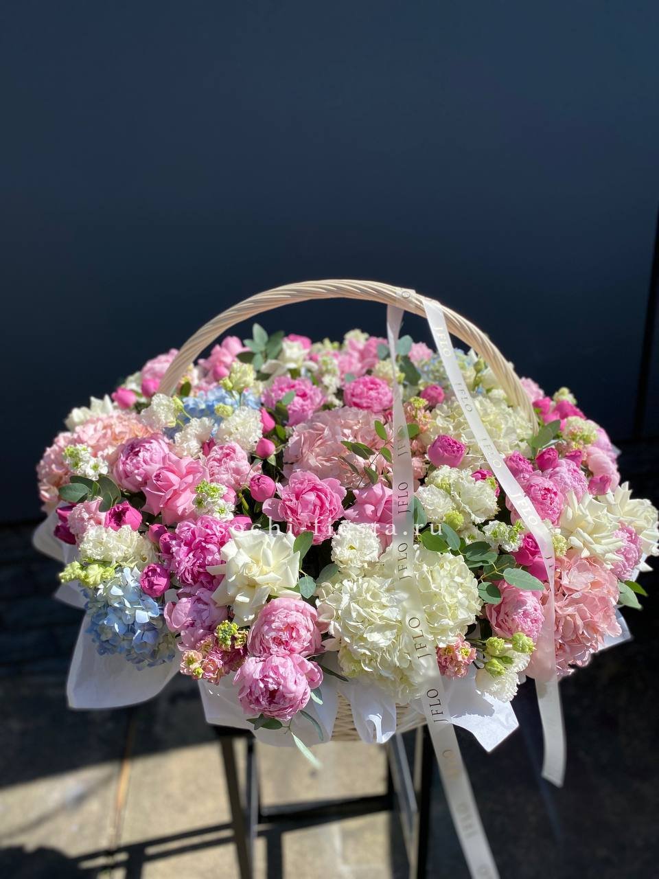 Цветочная корзина из пионов и пионовидных роз "Перфекте"