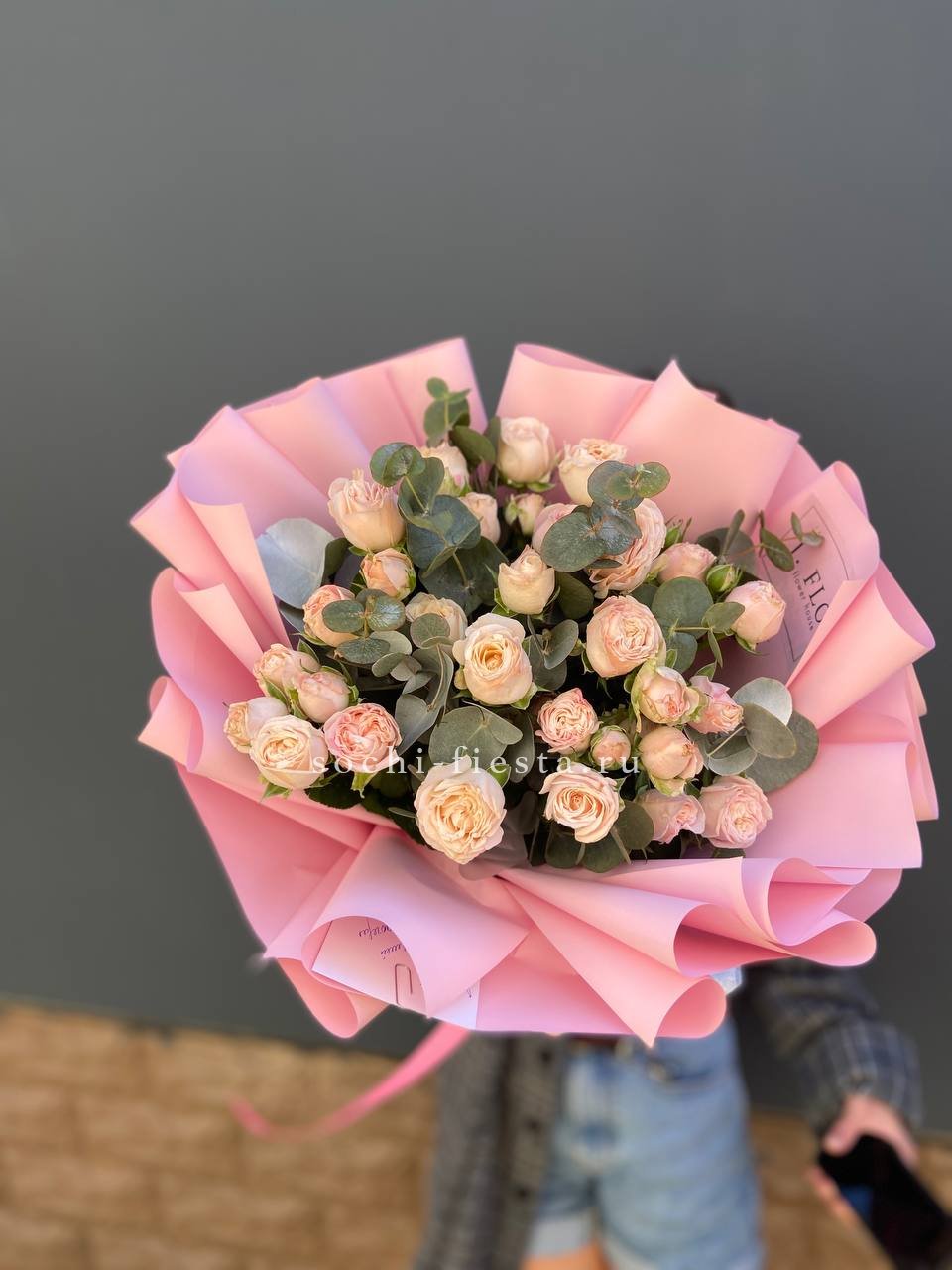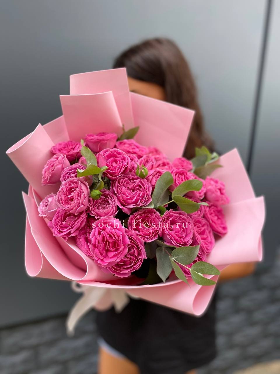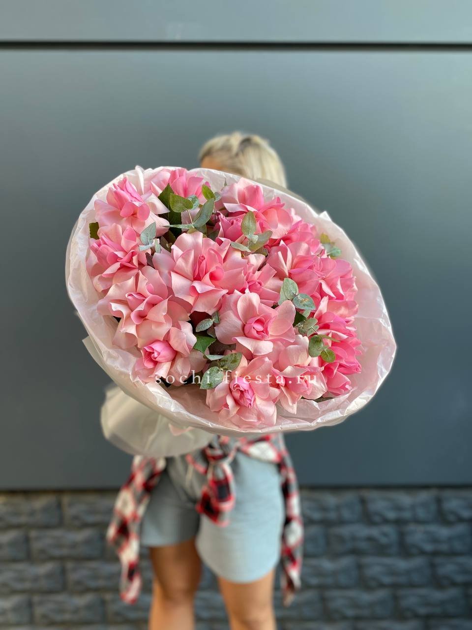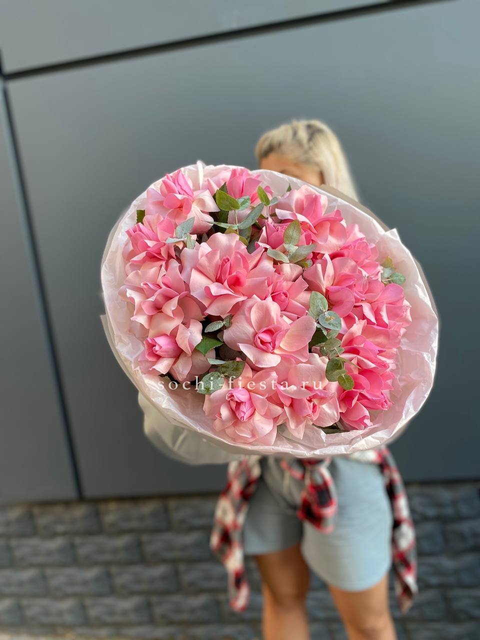 Состав букета на фотографии: 29 роз карина, крафт, лента