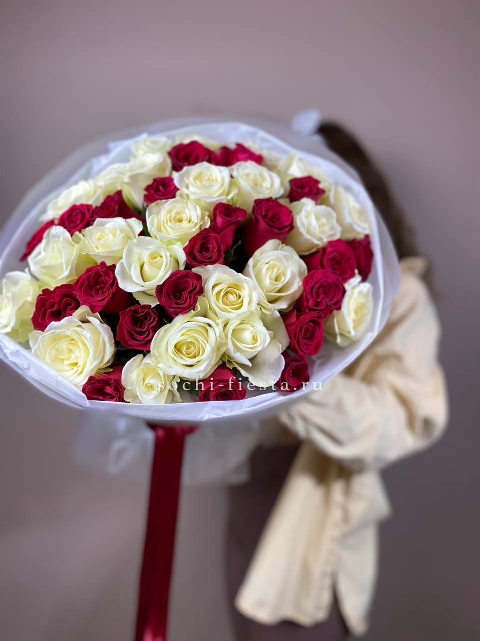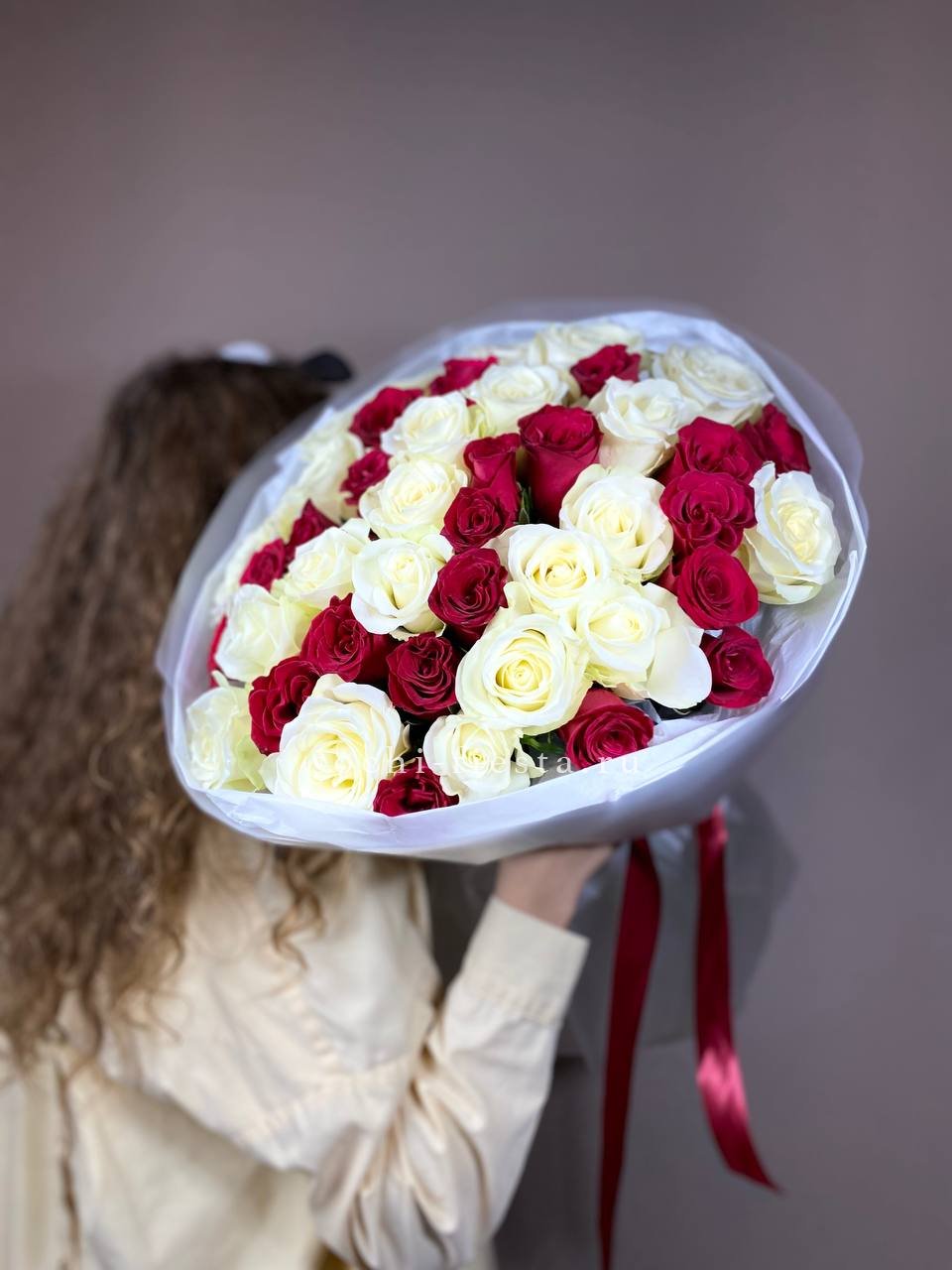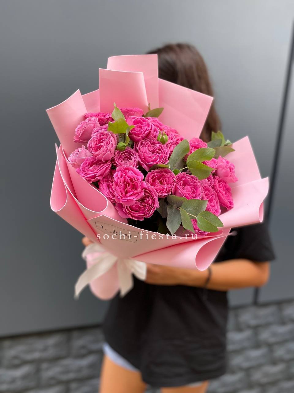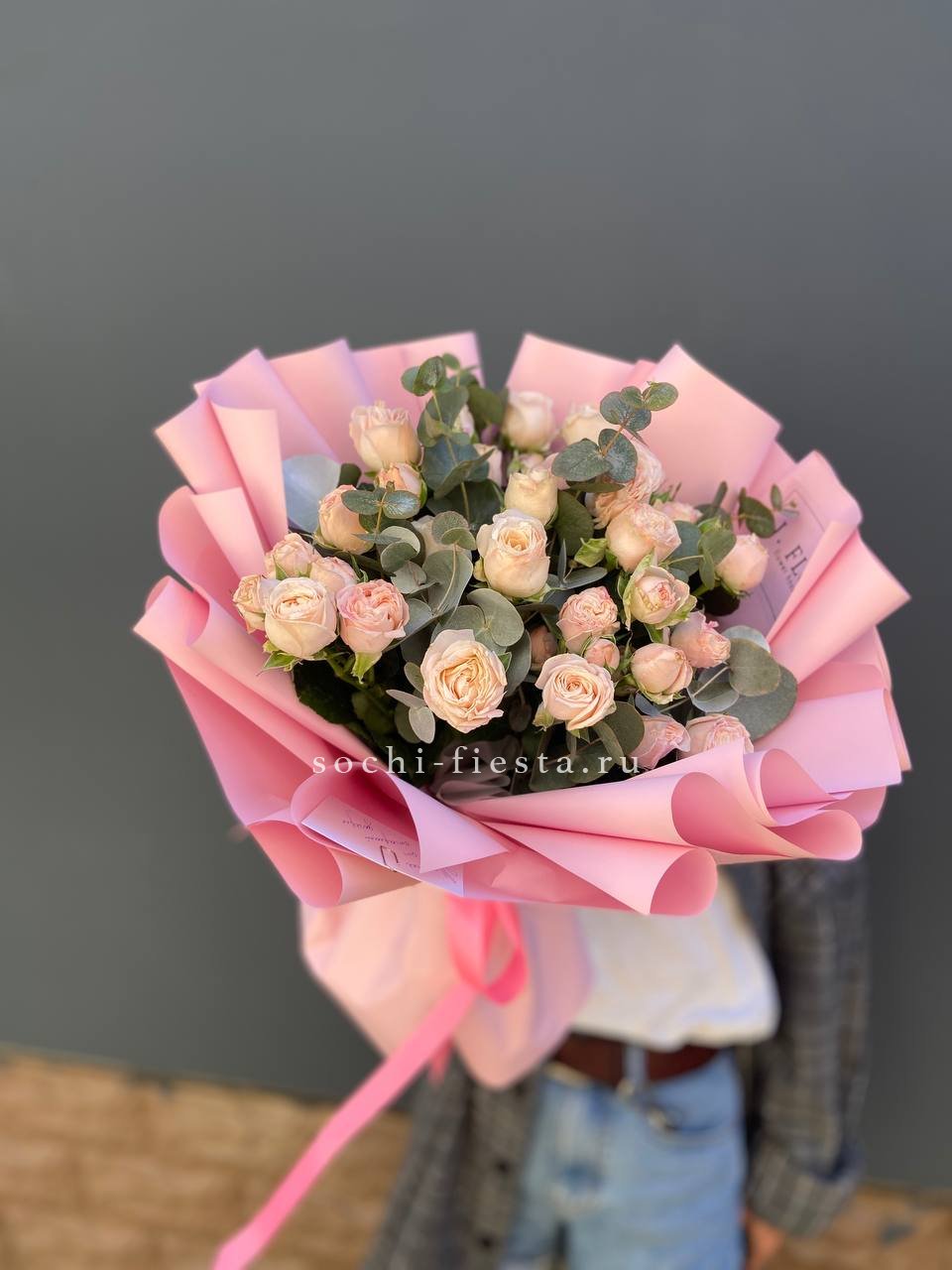 Состав букета на фотографии: 29 роз карина, крафт, лента