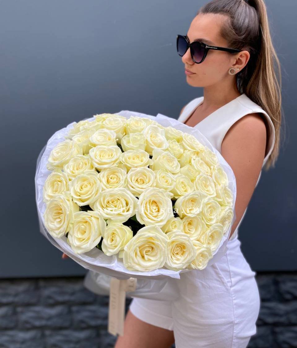 25 белых роз, сухоцветы, дизайнерская упаковка.