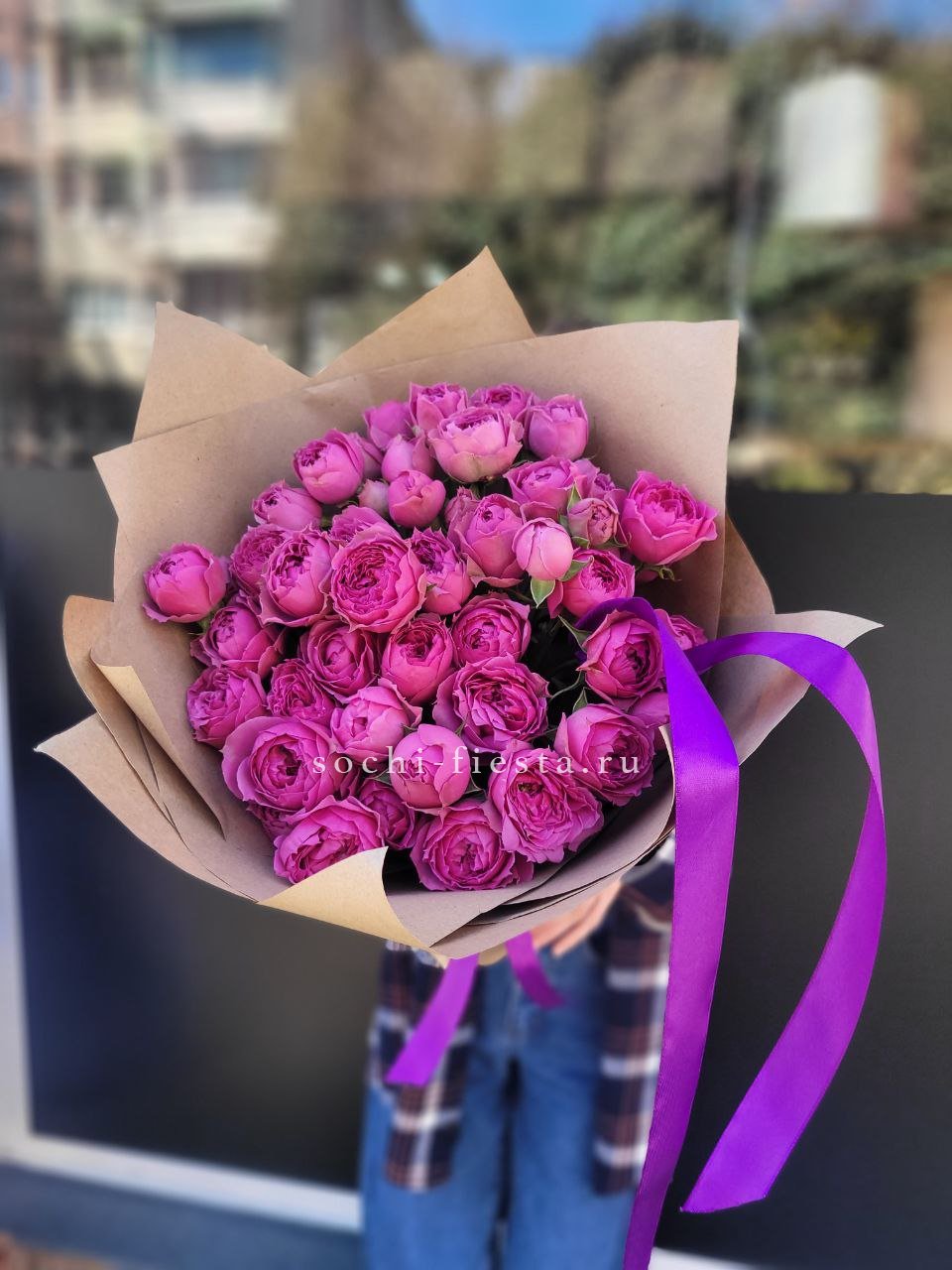 15 кустовых роз спрей, лента, упаковка на выбор.