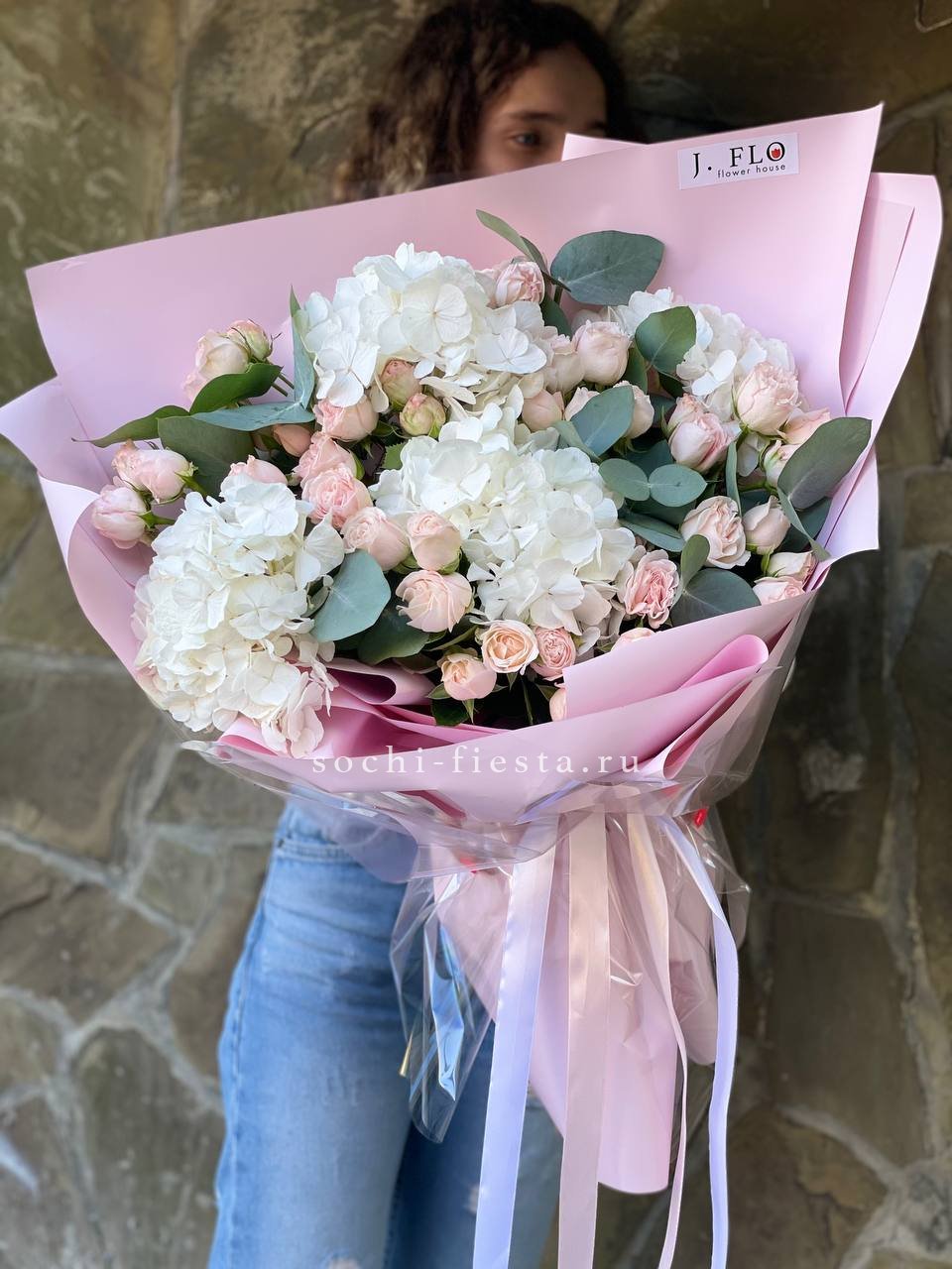 гортензия, диантус, хризантема, бомбастик, озатамус, пленка.