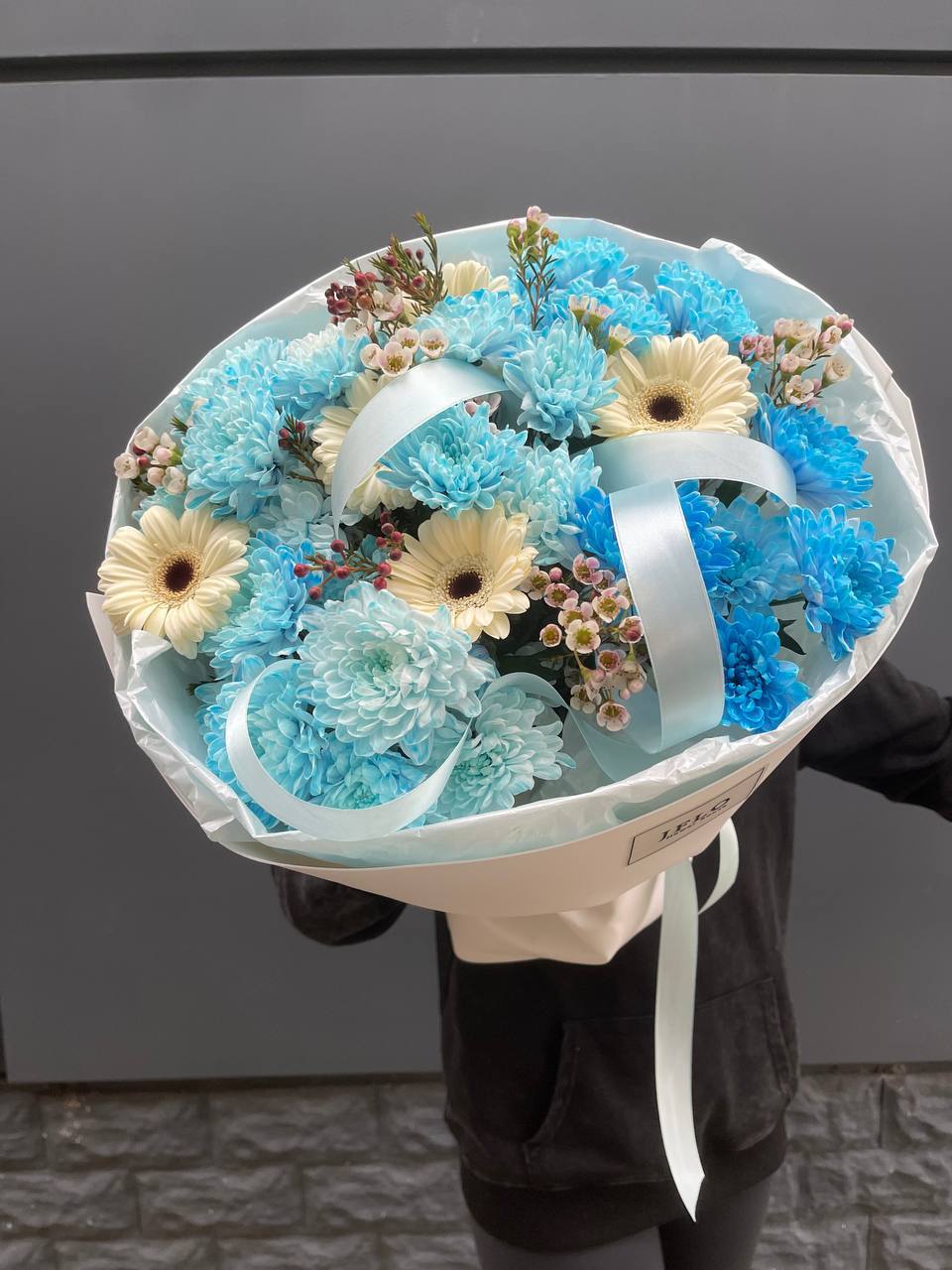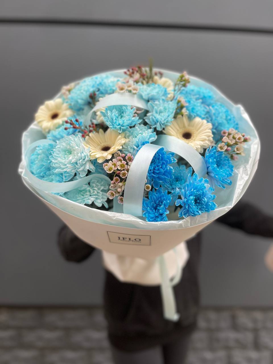 Хризантемы держат форму долго и остаются свежими даже в жаркие дни. Диантус и антиринум добавляют сборной композиции разнообразия без лишних деталей. Воздушная упаковка сохраняет аккуратный вид.