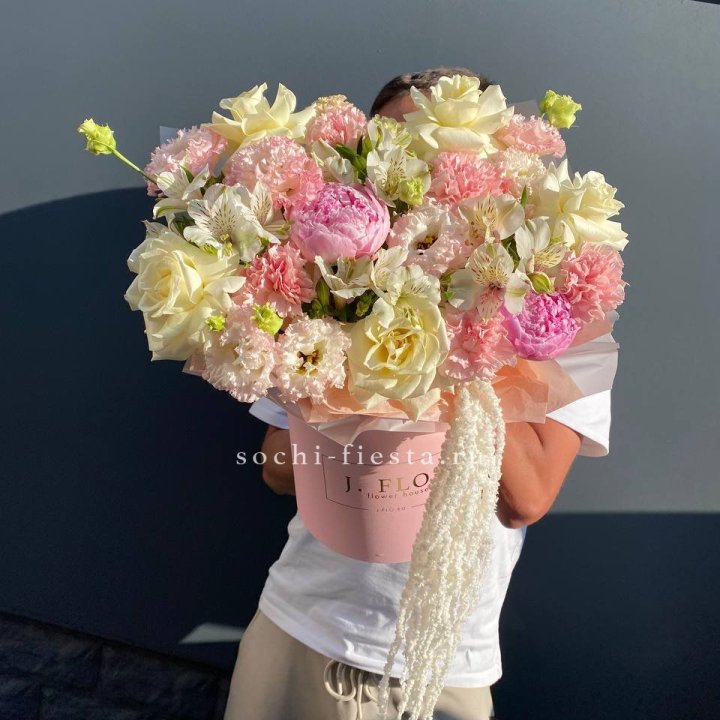 Сезонные позиции требуют предзаказа. Пионы в мае-июне — за 7-10 дней. Тюльпаны к 8 марта — за 5-10 дней. Амариллис зимой — за 3-5 дней. Подсолнухи летом — за 2-3 дня.